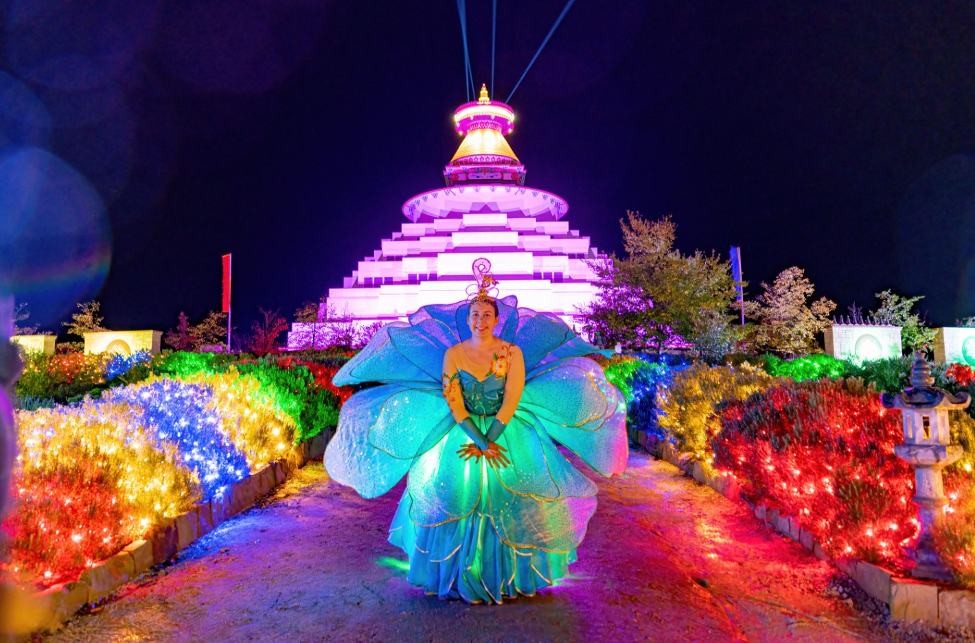 Immerse yourself in all the experiences the festival has to offer. Wander the Peace Park and interact with different light sculptures, be amazed by the performers, take a selfie with the Stupa, enjoy delicious vegetarian and vegan food, join in on Buddhist ceremonies and purge your negative emotions in Burning the Bad.